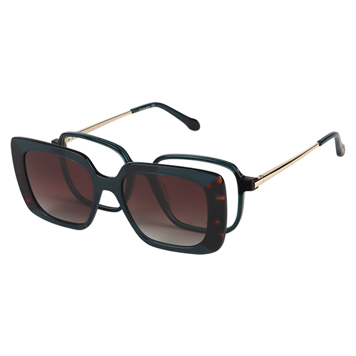 La monture APC020-C2 de la marque Äponem est un modèle optique pour femme en acétate laminé fait main de haute qualité, avec son clip solaire polarisé. Cette monture de forme carrée surprend par son détail bicolore asymétrique, pour un style enivrant et haut en couleurs.