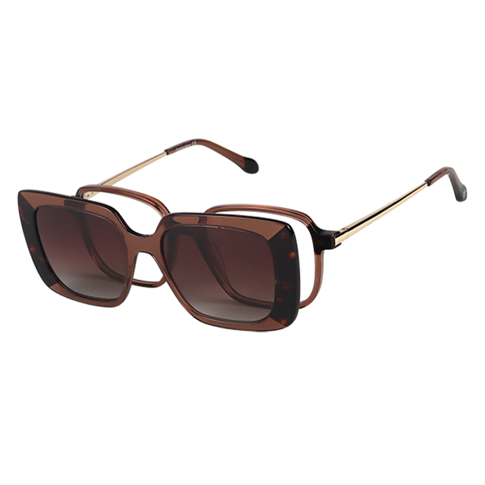 La monture APC020-C3 de la marque Äponem est un modèle optique pour femme en acétate laminé fait main de haute qualité, avec son clip solaire polarisé. Cette monture de forme carrée surprend par son détail bicolore asymétrique, pour un style enivrant et haut en couleurs.