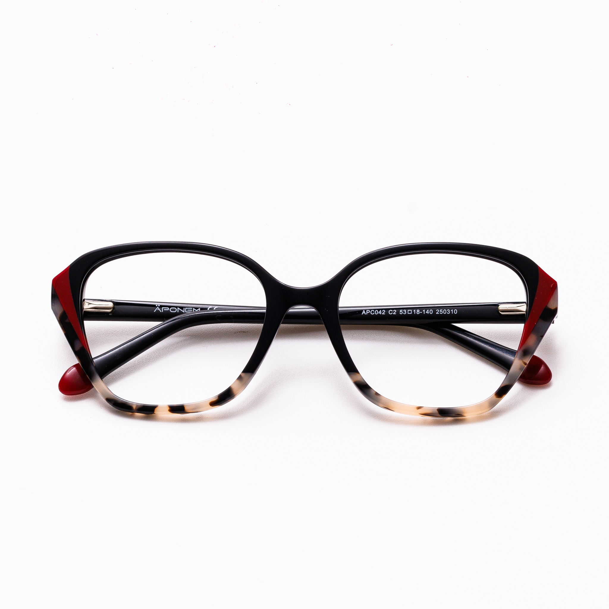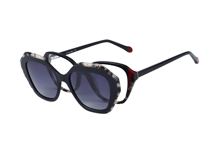 La monture APC042-C2 de la marque Äponem est un modèle optique pour femme en acétate laminé fait main de haute qualité, avec son clip solaire polarisé.Cette monture de forme papillonante affirmera votre féminité.