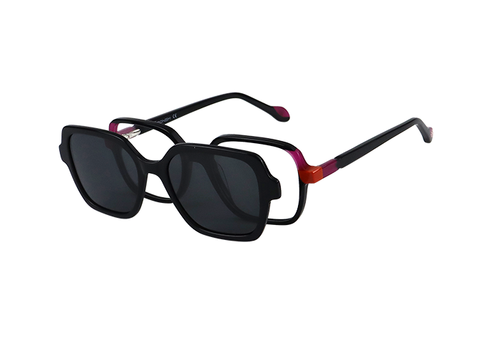 La monture APC053-C1 de la marque Äponem est un modèle optique pour fille en acétate laminé fait main de haute qualité, avec son clip solaire polarisé.
