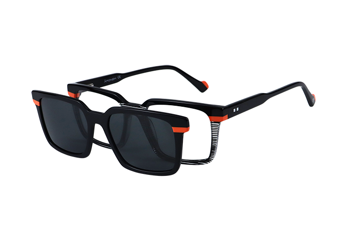 La monture APC061-C2 de la marque Äponem est un modèle optique pour homme en acétate laminé fait main de haute qualité, avec son clip solaire polarisé.